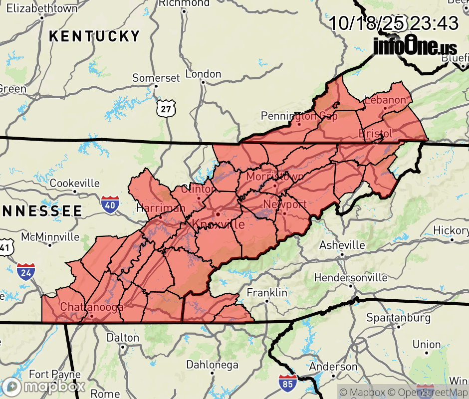 Canceled 10/19/25 5:00 PM Special Weather Statement issued October 18 at 11:41PM EDT by NWS Morristown TN A storm system will move across the Tennessee valley and southern Appalachians Sunday producing windy conditions. Southwest winds will increase ahead of a cold front with sustained winds of 10 to 20 mph and gusts up to 35 mph. Behind the cold front Sunday afternoon, winds will shift to the west with gusts up to 35 mph. Stronger winds are expected across the northern Plateau and far east Tennessee mountains. Gusty winds will blow around loose and unsecured objects, including holiday decor and festival tents. Tree limbs could be blown down and a few power outages may result. Ensure outdoor objects are secured. ![]() |