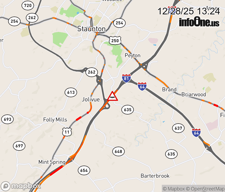 On I-81 North at mile marker 221 in the County of Augusta, motorists can expect delays due to a vehicle crash. Updated: Sun 12/28/25 1:24 PM EST ![]() Updated: Sun 12/28/25 1:24 PM EST |