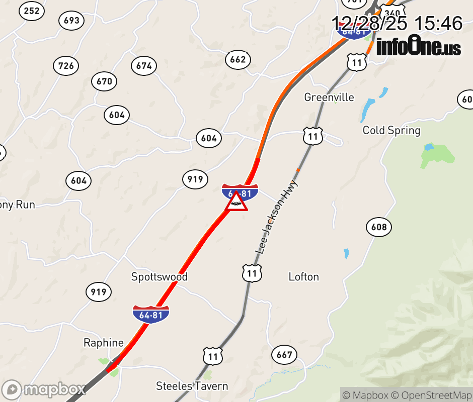 On I-81 North at mile marker 208.9 in the County of Augusta, motorists can expect delays due to a multi-vehicle crash. Updated: Sun 12/28/25 3:46 PM EST ![]() Updated: Sun 12/28/25 3:46 PM EST |