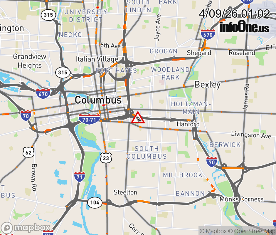 The 2 left lanes are blocked on I-70 East at E Fulton St, due to repairs/maintenance. Updated: Thu 4/9/26 1:02 AM EDT ![]() Updated: Thu 4/9/26 1:02 AM EDT |