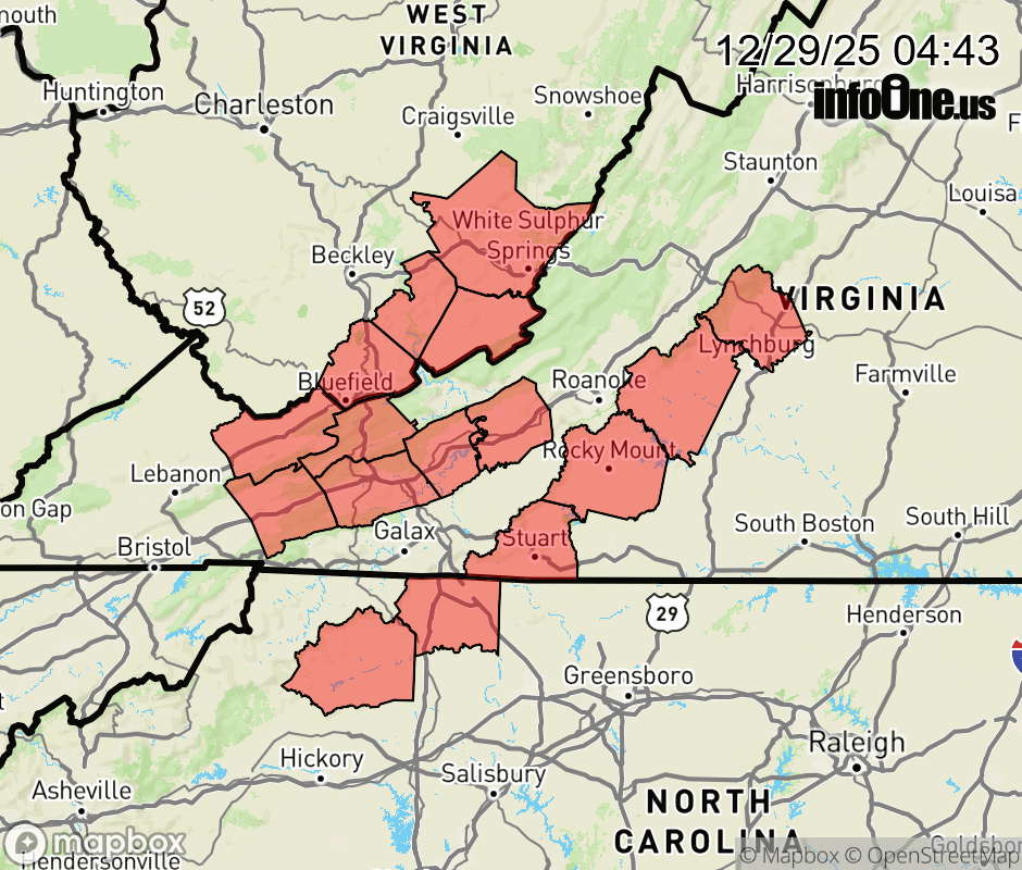 Canceled 12/29/25 1:24 PM Wind Advisory issued December 29 at 4:42AM EST until December 30 at 12:00PM EST by NWS Blacksburg VA * WHAT... West winds 15 to 25 mph with gusts up to 50 mph expected. * WHERE... Portions of north central and northwest North Carolina, central, south central, southwest, and west central Virginia, and southeast West Virginia. * WHEN... Until noon EST Tuesday. * IMPACTS... Gusty winds will blow around unsecured objects. Tree limbs could be blown down and a few power outages may result. ![]() |