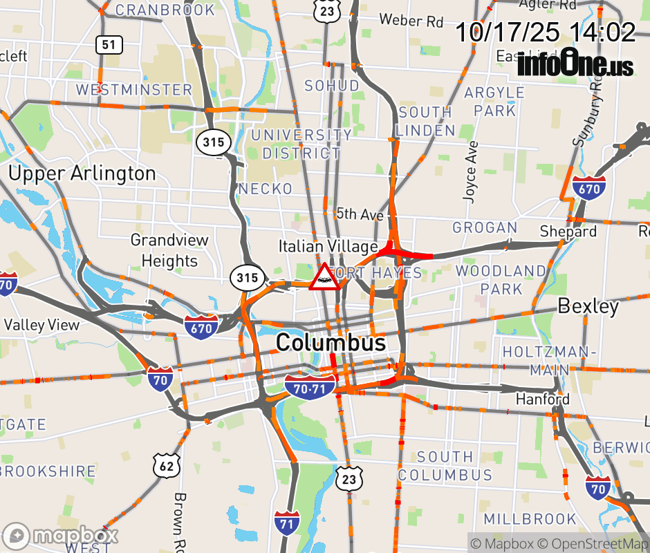The right lane is blocked on I-670 West beyond US 23 North/Fourth St, due to a crash. Updated: Fri 10/17/25 2:02 PM EDT ![]() Updated: Fri 10/17/25 2:02 PM EDT |