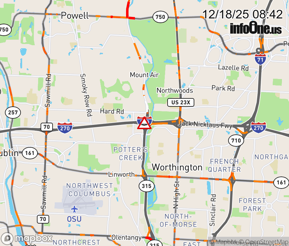 The left shoulder is blocked on I-270 East at US-23, due to a crash. ![]() |
