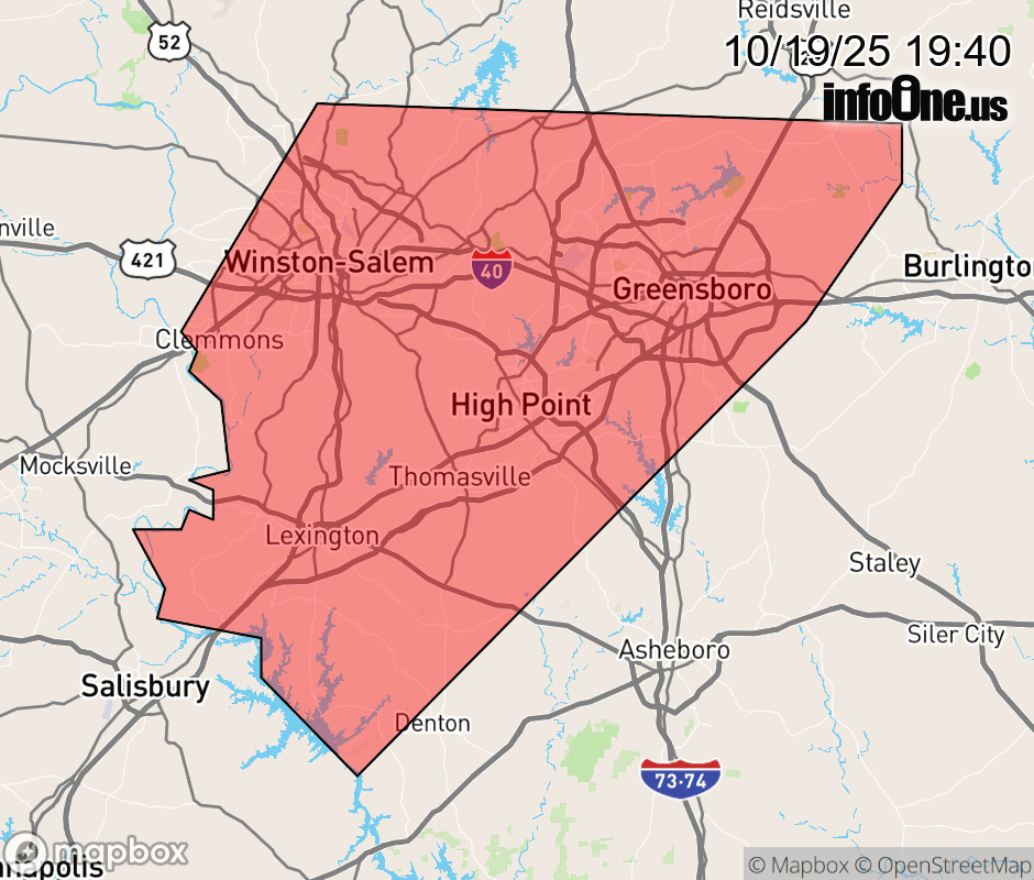 Canceled 10/19/25 8:45 PM Special Weather Statement issued October 19 at 7:39PM EDT by NWS Raleigh NC At 737 PM EDT, Doppler radar was tracking gusty showers along a line extending from Ayersville to Bermuda Run to near Mooresville. Movement was east at 40 mph. HAZARD...Wind gusts in excess of 30 mph. SOURCE...Radar indicated. IMPACT...Gusty winds could knock down tree limbs and blow around unsecured objects. Locations impacted include... Greensboro, Winston-Salem, High Point, Lexington, Thomasville, Kernersville, Clemmons, Linwood, McLeansville, and Lewisville. This includes the following highways... Interstate 85 between Mile Markers 33 and 35, and between Mile Markers 84 and 131. Interstate 40 between Mile Markers 132 and 133, and between Mile Markers 182 and 226. Interstate 73 between Mile Markers 88 and 103. Interstate 74 between Mile Markers 56 and 79. ![]() |