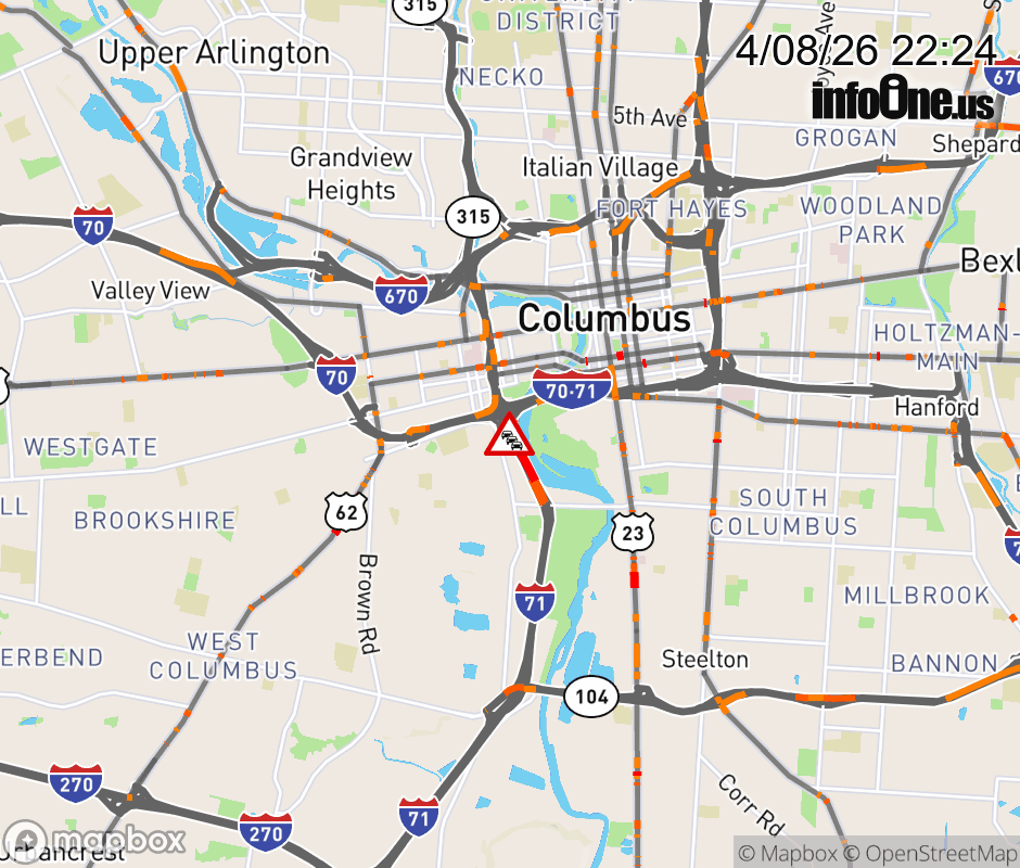 All lanes are closed on SR-315 North at Ramp I-71 North to I-70 West, due to repairs/maintenance. Updated: Wed 4/8/26 10:24 PM EDT ![]() Updated: Wed 4/8/26 10:24 PM EDT |