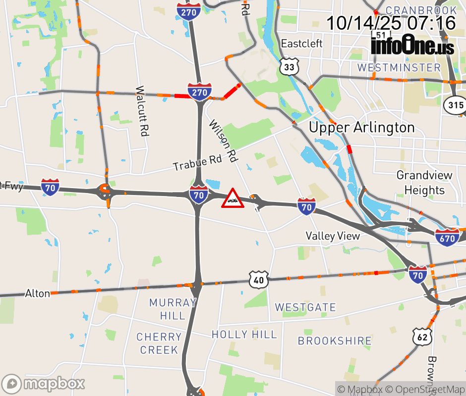 The right shoulder is blocked on I-70 East beyond I-270 North (West Side), due to a disabled vehicle. ![]() |