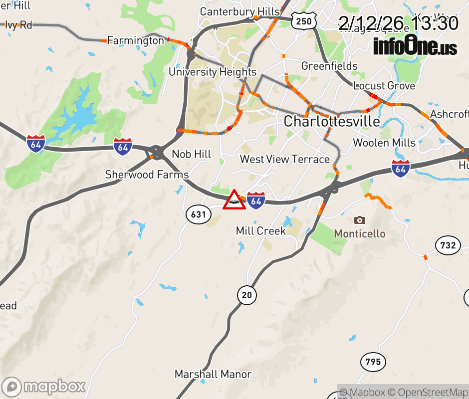 On I-64 at mile marker 120 in the County of Albemarle, motorists can expect delays due to a vehicle crash. The east right shoulder is closed. ![]() |