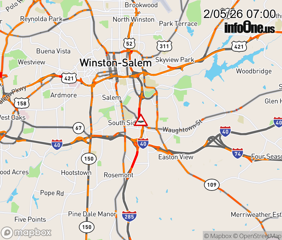 The left lane is closed past Exit 108 (Research Pkwy) ![]() |