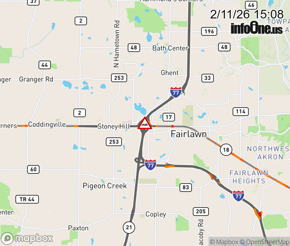 The right lane is blocked on I-77 South at SR-18 East, due to a disabled vehicle. ![]() |