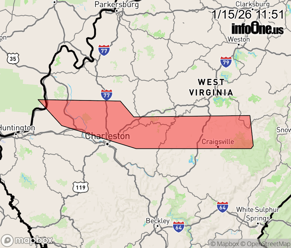 Canceled 1/15/26 12:45 PM Snow Squall Warning issued January 15 at 11:50AM EST until January 15 at 12:45PM EST by NWS Charleston WV The National Weather Service in Charleston West Virginia has issued a * Snow Squall Warning for... Southern Gallia County in southeastern Ohio... Southwestern Mason County in western West Virginia... Northern Nicholas County in southeastern West Virginia... Putnam County in western West Virginia... Northern Kanawha County in central West Virginia... South central Braxton County in north central West Virginia... Southwestern Roane County in central West Virginia... Southwestern Webster County in northeastern West Virginia... Clay County in north central West Virginia... Southeastern Jackson County in northwestern West Virginia... * Until 1245 PM EST. * At 1150 AM EST, a dangerous snow squall was located along a line extending from 6 miles southwest of Buffalo to near Elkview to near Birch River, moving southeast at 10 mph. HAZARD...Intense bursts of heavy snow. Gusty winds leading to blowing snow and visibility rapidly falling to less than one-quarter mile. Wind gusts up to 35 mph. SOURCE...Radar indicated. IMPACT...Travel will become difficult and potentially dangerous within minutes. This includes the following highways... Interstate 79 between mile markers 1 and 21. Interstate 77 in West Virginia between mile markers 103 and 123. Interstate 64 in West Virginia between mile markers 39 and 46. Route 19 between mile markers 45 and 61. Locations impacted include... Charleston, Nitro, Winfield, Clay, Webster Springs, Sissonville, Eleanor, Buffalo, Clendenin, Poca, Addison (Webster Springs), Camden-On-gauley, Pinch, Glen, Elkview, Cross Lanes, Birch River, Craigsville, Camden On Gauley, and Teays Valley. ![]() |