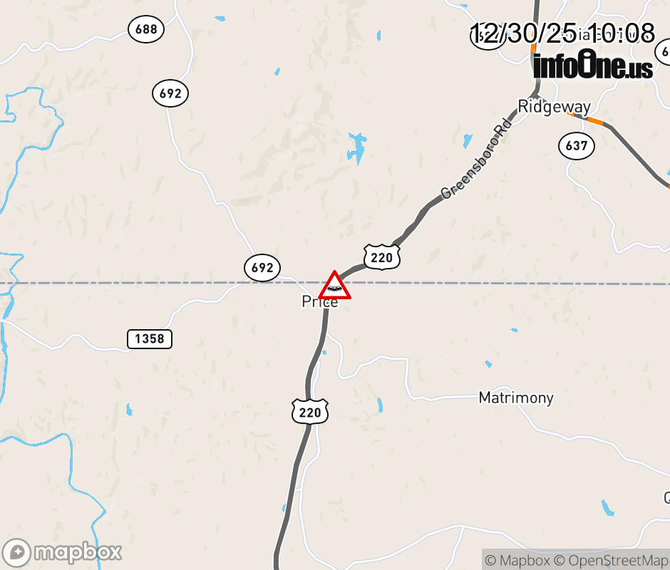 On US-220 North in the County of Franklin, in the vicinity of Wirtz Rd; Rt. 697E/W (Franklin County), motorists can expect delays due to a vehicle crash. Lane closures exist. ![]() |