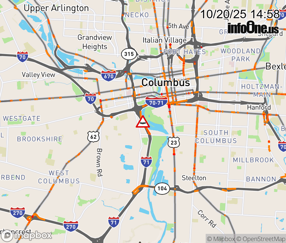 The right shoulder is blocked on I-71 North beyond Greenlawn Ave, due to a crash. Updated: Mon 10/20/25 2:58 PM EDT ![]() Updated: Mon 10/20/25 2:58 PM EDT |