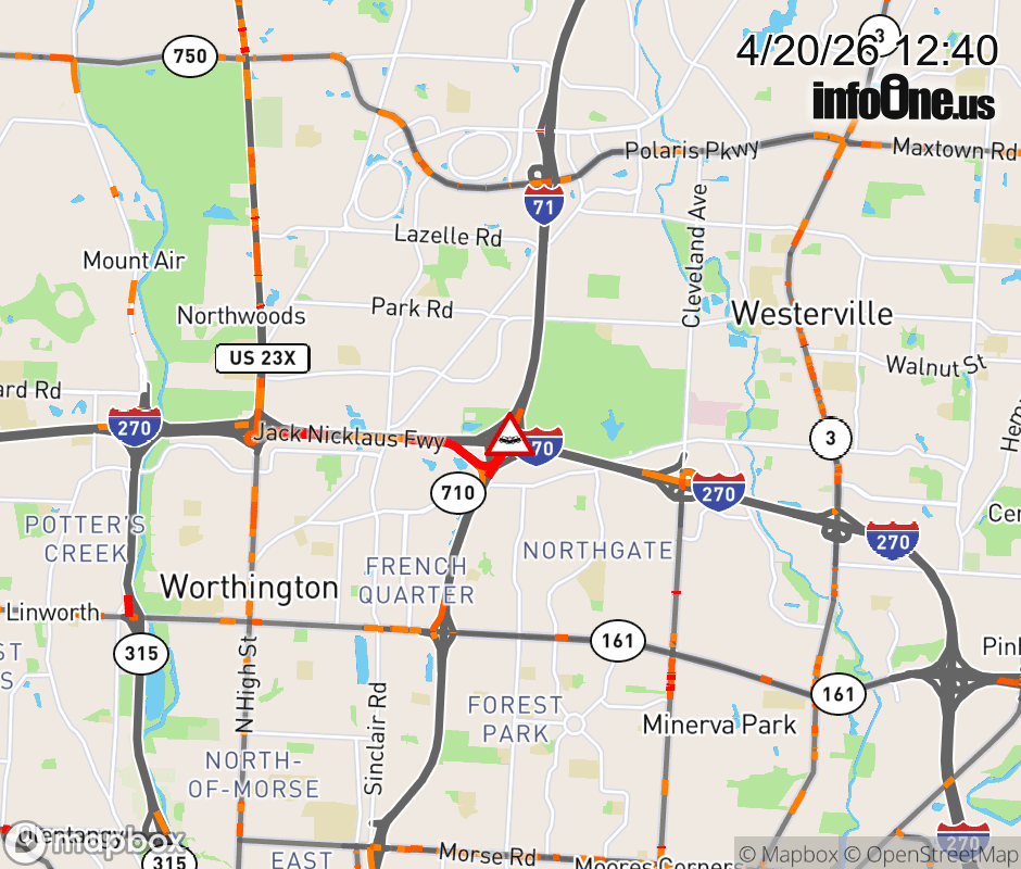 The left lane is blocked on I-71 North beyond I-270 (North Side), due to a crash. Updated: Mon 4/20/26 12:40 PM EDT ![]() Updated: Mon 4/20/26 12:40 PM EDT |