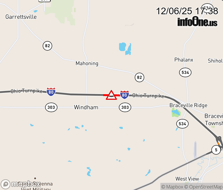 Expect lane closures on I-80 West (Ohio Turnpike) beyond SR-5, due to a crash. ![]() |