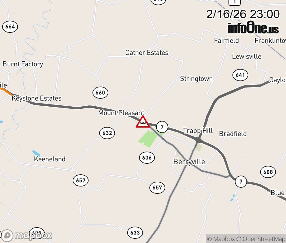 On VA-7 in the County of Clarke, in the vicinity of Kimble Rd; Xver; Rt. 653E/W (Clarke County), motorists can expect delays due to a multi-vehicle crash. The east left shoulder, left lane, and right shoulder are closed. ![]() |