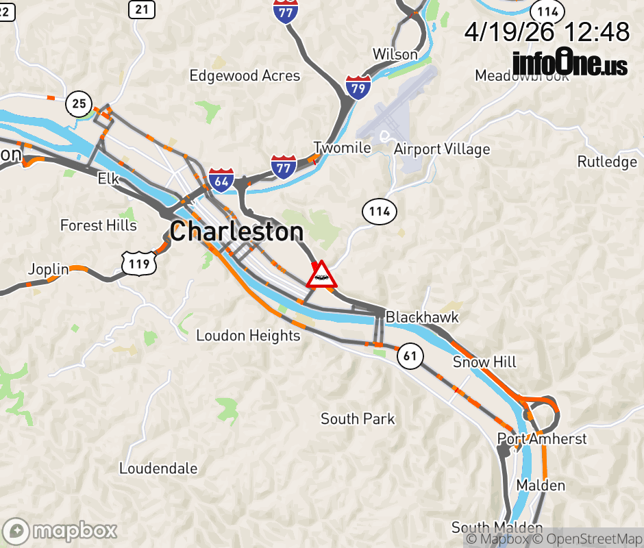 Vehicle Crash on WV-114 (Greenbrier St) & I-77 South Ramps (MM 99) in Charleston. ![]() |