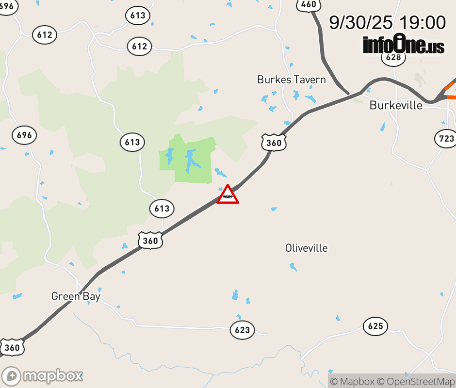 On US-360 in the County of Prince Edward, in the vicinity of Rt. 621N/S (Prince Edward County), motorists can expect delays due to a vehicle crash. The east left shoulder and left lane are closed.