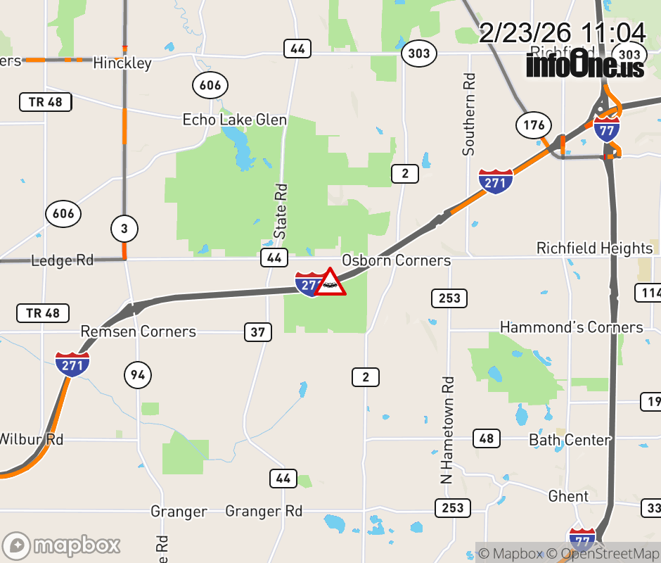 Expect lane closures on I-271 South beyond Summit County Rest Area 4-4, due to a crash. ![]() |