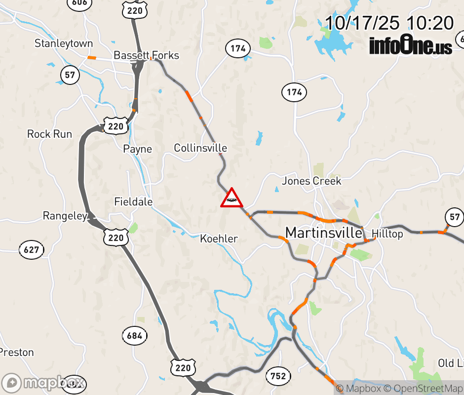 On BUS US-220 in the County of Henry, in the vicinity of Smith Rucker Rd; Rt. 1133N/S (Henry County);KOEHLER RD(L)/ SMITH RUCKER RD(R), motorists can expect delays due to a vehicle crash. The north right lane and right shoulder are closed. ![]() |