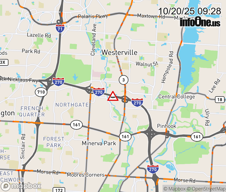 The right shoulder is blocked on I-270 West at SR-3, due to a crash. Updated: Mon 10/20/25 9:28 AM EDT ![]() Updated: Mon 10/20/25 9:28 AM EDT |
