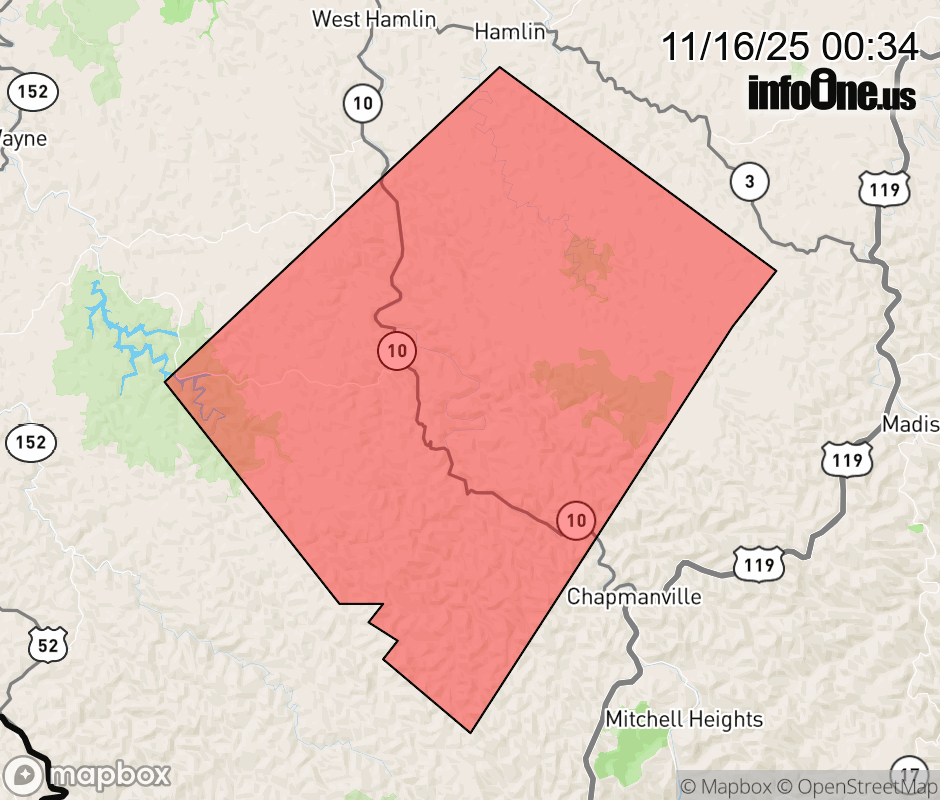 Canceled 11/16/25 12:36 AM Severe Thunderstorm Warning issued November 16 at 12:33AM EST until November 16 at 12:45AM EST by NWS Charleston WV At 1233 AM EST, a severe thunderstorm was located over Beech Fork State Park, moving southeast at 40 mph. HAZARD...60 mph wind gusts. SOURCE...Radar indicated. IMPACT...Expect damage to roofs, siding, and trees. Locations impacted include... Ranger, Spurlockville, Gill, Harts, Palermo, Mud, and Myra. ![]() |