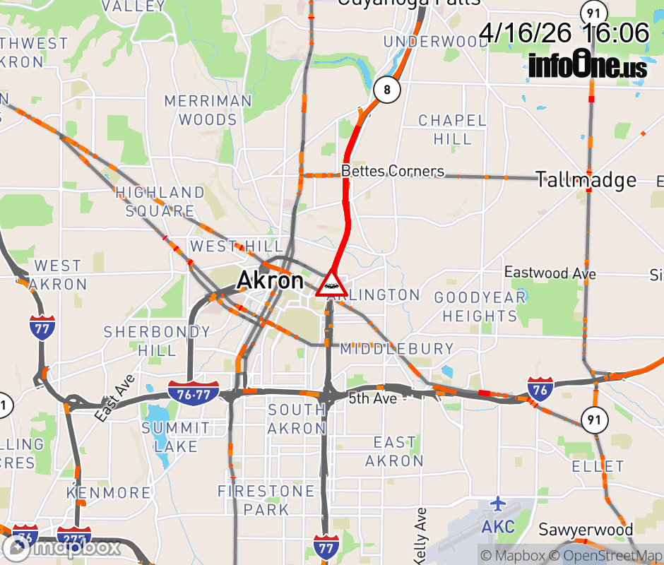 The right lane is blocked on SR-8 South at Perkins St, due to a crash. Updated: Thu 4/16/26 4:06 PM EDT ![]() Updated: Thu 4/16/26 4:06 PM EDT |