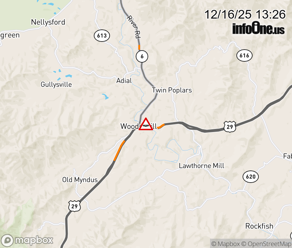 On US-29 in the County of Nelson, in the vicinity of Tidbit Trl; WYE VA-6E/W, motorists can expect delays due to a vehicle crash. The south left shoulder and left lane are closed. Updated: Tue 12/16/25 1:26 PM EST ![]() Updated: Tue 12/16/25 1:26 PM EST |