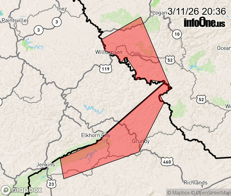 Canceled 3/11/26 9:00 PM Special Weather Statement issued March 11 at 8:35PM EDT by NWS Charleston WV At 835 PM EDT, Doppler radar was tracking strong thunderstorms along a line extending from Grethel to near Lookout to Payne Gap. Movement was northeast at 55 mph. HAZARD...Wind gusts up to 40 mph. SOURCE...Radar indicated. IMPACT...Gusty winds could knock down tree limbs and blow around unsecured objects. Locations impacted include... Williamson, Clintwood, Grundy, Haysi, Breaks Interstate, John Flannagan Lake, Delbarton, Big Rock, Red Jacket, Chattaroy, Paw Paw, Hinch, Holden, Clinchco, Myrtle, Pie, Varney, Hurley, Meador, and Roseann. This includes Route 119 between mile markers 9 and 22. ![]() |