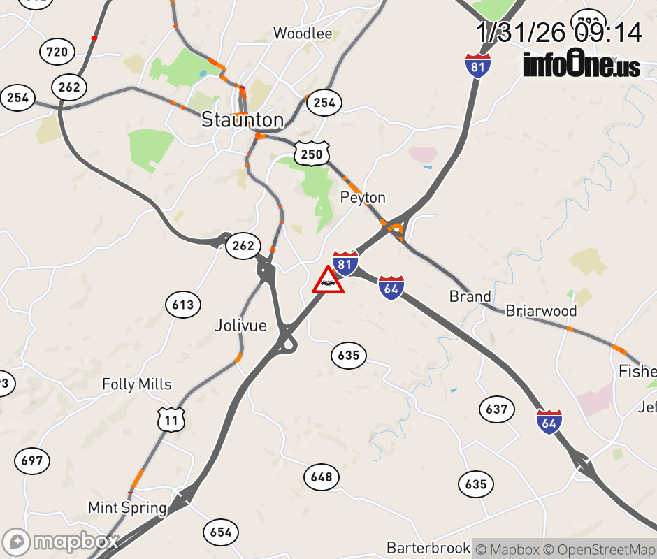 On I-64 West at mile marker 87 in the County of Augusta, motorists can expect delays due to a vehicle crash. Updated: Sat 1/31/26 9:14 AM EST ![]() Updated: Sat 1/31/26 9:14 AM EST |