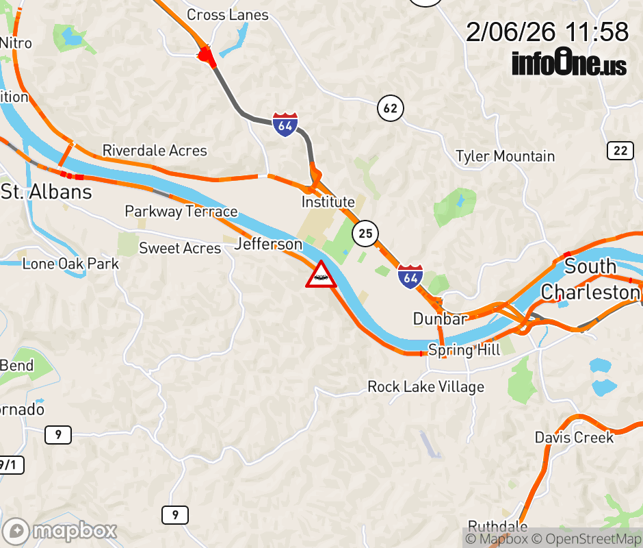 Vehicle Crash on WV-60(6390 MacCorkle Ave SW). The eastbound right lane is closed. ![]() |