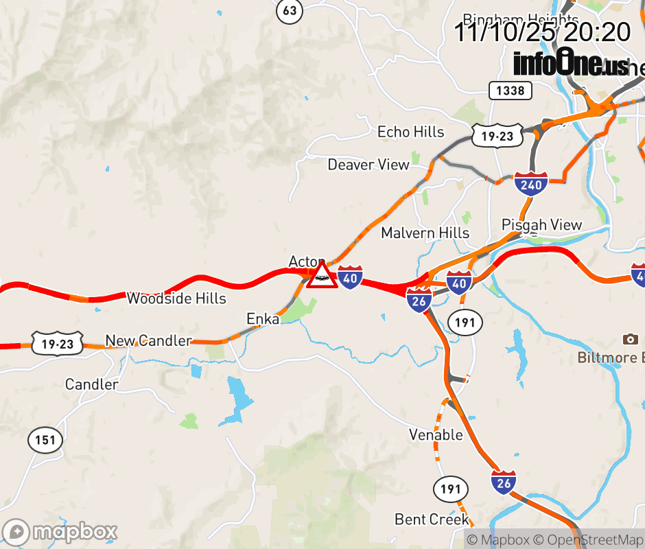 The right lane is closed half mile past Exit 44, US 19 (Smokey Park Highway). Updated: Mon 11/10/25 8:20 PM EST ![]() Updated: Mon 11/10/25 8:20 PM EST |
