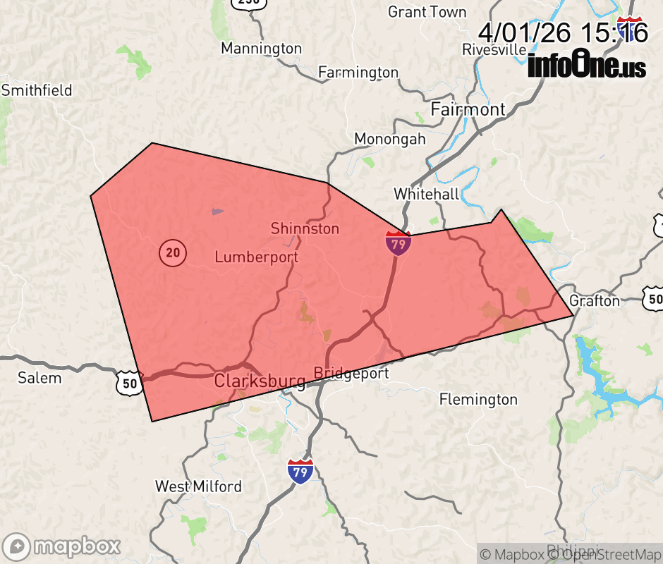 Canceled 4/1/26 3:45 PM Special Weather Statement issued April 1 at 3:14PM EDT by NWS Charleston WV At 314 PM EDT, Doppler radar was tracking a strong thunderstorm near Lumberport, or near Clarksburg, moving east at 25 mph. HAZARD...Wind gusts up to 40 mph and pea size hail. SOURCE...Radar indicated. IMPACT...Gusty winds could knock down tree limbs and blow around unsecured objects. Minor hail damage to vegetation is possible. Locations impacted include... Clarksburg, Bridgeport, Shinnston, Lumberport, Enterprise, Wallace, McGee, Meadowbrook, Wolf Summit, Meadland, and Despard. This includes the following highways... Interstate 79 between mile markers 120 and 128. Route 50 in West Virginia between mile markers 72 and 80. ![]() |
