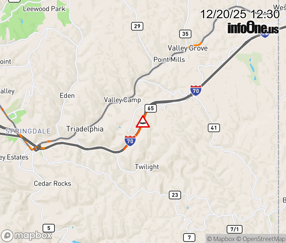 Canceled 12/20/25 12:50 PM Location: I-70 at MM 9.0, WV Accident.