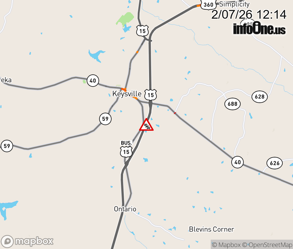 On VA-628 in the County of Charlotte, in the vicinity of Dead End, motorists can expect delays due to weather. The north left lane and right lane are closed. The south through lanes are closed. Updated: Sat 2/7/26 12:14 PM EST ![]() |