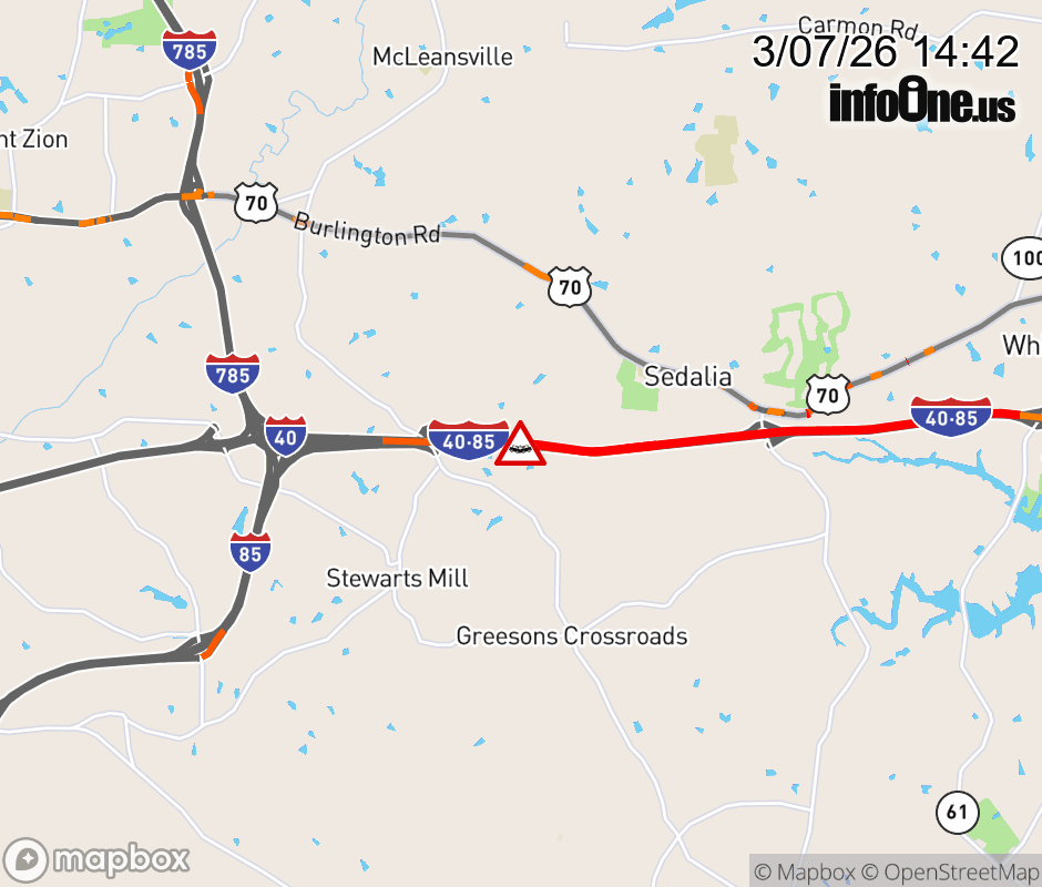 The right lane is closed near Exit 132 (Mt Hope Church Rd). Updated: Sat 3/7/26 2:42 PM EST ![]() Updated: Sat 3/7/26 2:42 PM EST |