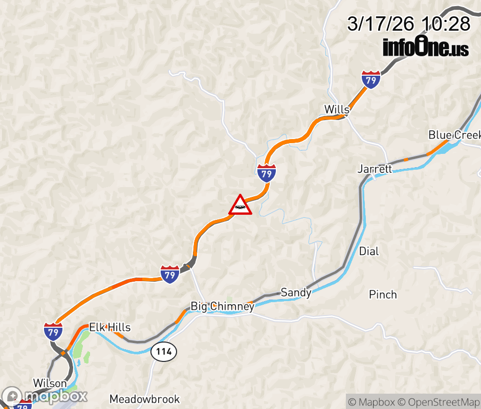 Vehicle Crash on I-79S at Mile Marker 7.0. The southbound left lane is closed. Updated: Tue 3/17/26 10:28 AM EDT ![]() Updated: Tue 3/17/26 10:28 AM EDT |