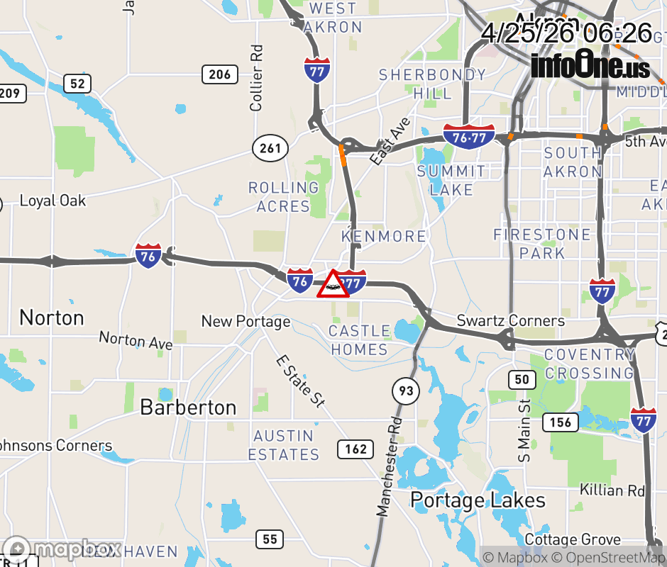 The center lane is blocked on I-76/US-224 East at US-224, due to a crash. Updated: Sat 4/25/26 6:26 AM EDT ![]() Updated: Sat 4/25/26 6:26 AM EDT |