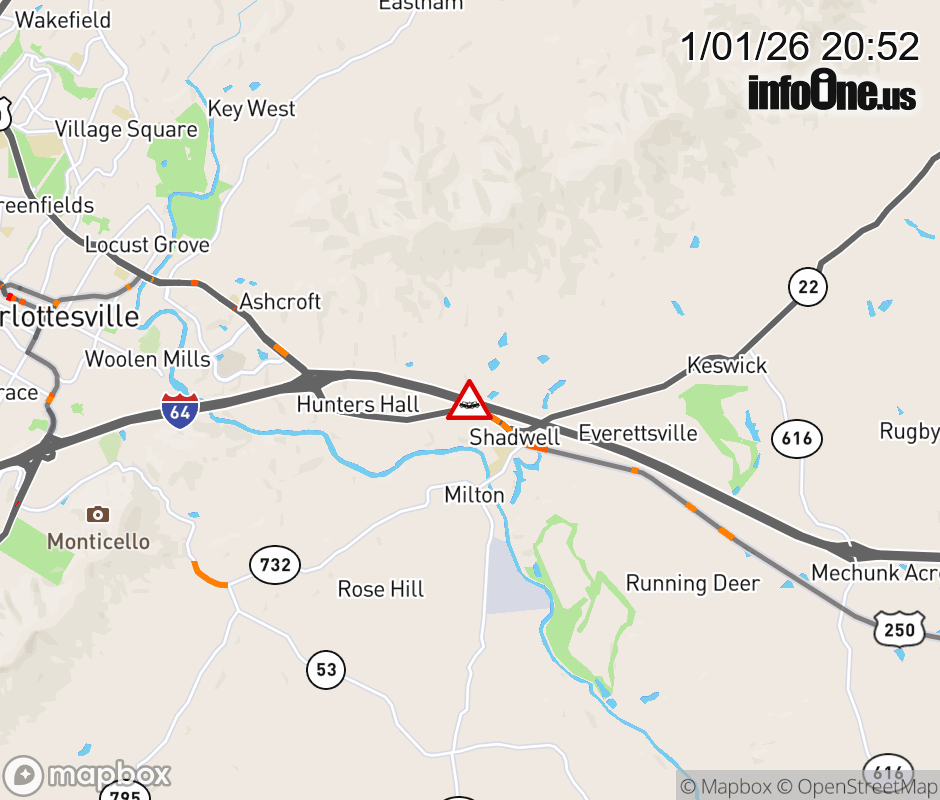 On I-64 at mile marker 126 in the County of Albemarle, motorists can expect delays due to a vehicle crash. The west left shoulder is closed.