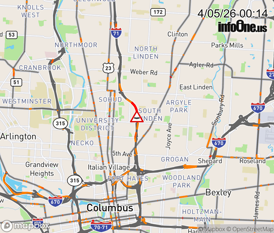 The right lane is blocked on I-71 South at 17th Ave, due to a crash. Updated: Sun 4/5/26 12:14 AM EDT ![]() Updated: Sun 4/5/26 12:14 AM EDT |