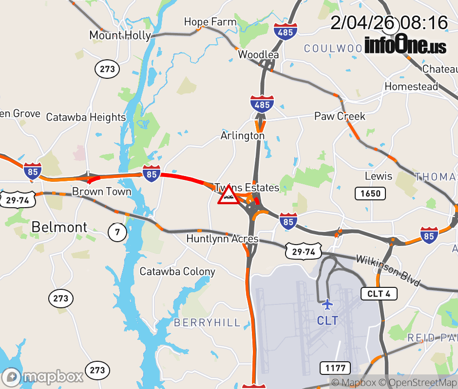 The right shoulder is closed at Exit 30 (I-485.). Updated: Wed 2/4/26 8:16 AM EST ![]() Updated: Wed 2/4/26 8:16 AM EST |