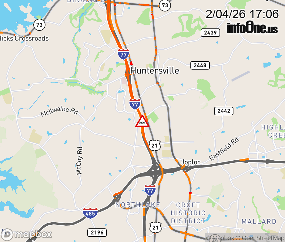 Disabled Vehicle on I-77 North Bound prior to exit 23, Gilead Rd. The transfer lane between the general purpose and toll lanes is partially blocked. ![]() |