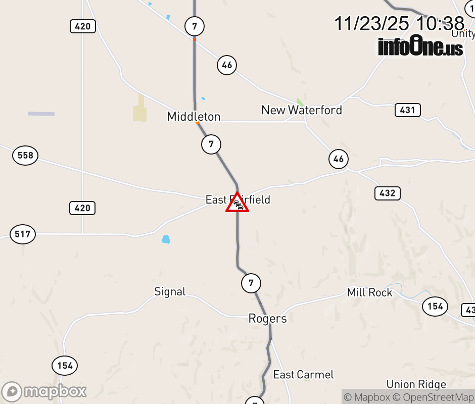 All lanes are closed on SR-7 North at US-30/SR-11 all lanes are closed on SR-7 South at SR-558, due to an other incident. Updated: Sun 11/23/25 10:38 AM EST ![]() Updated: Sun 11/23/25 10:38 AM EST |