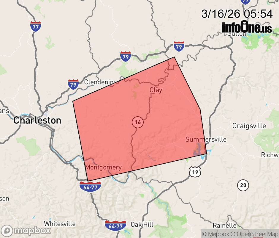 Canceled 3/16/26 6:02 AM Severe Thunderstorm Warning issued March 16 at 5:53AM EDT until March 16 at 6:30AM EDT by NWS Charleston WV SVRRLX The National Weather Service in Charleston West Virginia has issued a * Severe Thunderstorm Warning for... West central Nicholas County in southeastern West Virginia... East central Kanawha County in central West Virginia... Clay County in north central West Virginia... Northwestern Fayette County in southeastern West Virginia... * Until 630 AM EDT. * At 553 AM EDT, a severe thunderstorm was located near Smithers, or 17 miles northwest of Fayetteville, moving east at 45 mph. HAZARD...60 mph wind gusts. SOURCE...Radar indicated. IMPACT...Expect damage to roofs, siding, and trees. * Locations impacted include... Summersville, Clay, Montgomery, Cedar Grove, Glasgow, Smithers, Gauley Bridge, Pratt, Glen, Pinch, Powellton, Handley, Bickmore, Procious, Swiss, Indore, Bentree, Kesslers Cross Lanes, Drennan, and Ivydale. This includes Route 19 between mile markers 38 and 40. ![]() |
