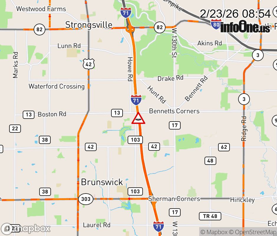 Expect lane closures on I-71 South beyond SR-82/Royalton Rd, due to a crash. ![]() |