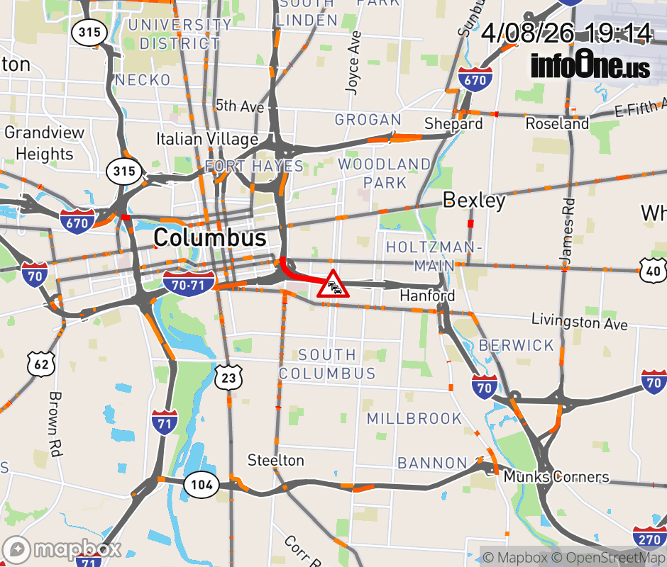 The left lane is blocked on I-70 East beyond E Fulton St, due to repairs/maintenance. ![]() |