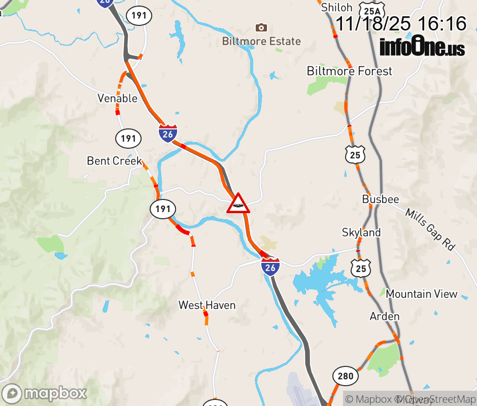 The right shoulder is closed after Exit 37, NC 146 (Long Shoals Rd). Updated: Tue 11/18/25 4:16 PM EST ![]() Updated: Tue 11/18/25 4:16 PM EST |