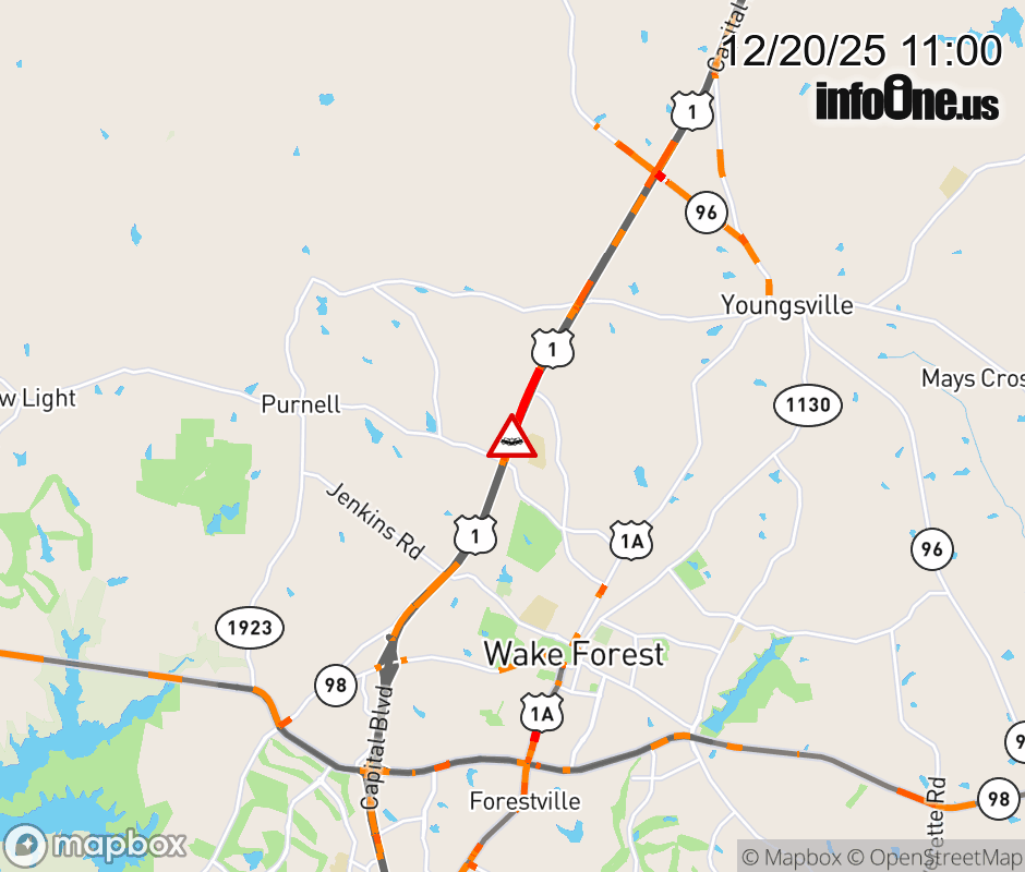 Canceled 12/20/25 1:18 PM Location: US-1N, NC Vehicle Crash.