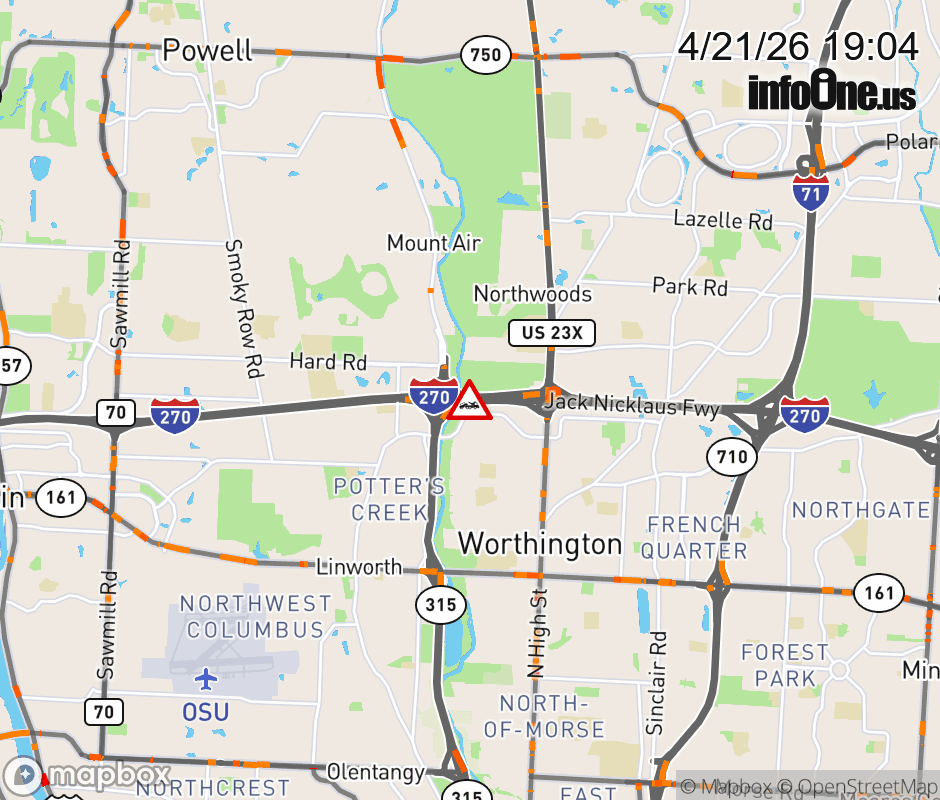 The left shoulder is blocked on I-270 East beyond US-23, due to a disabled vehicle. ![]() |
