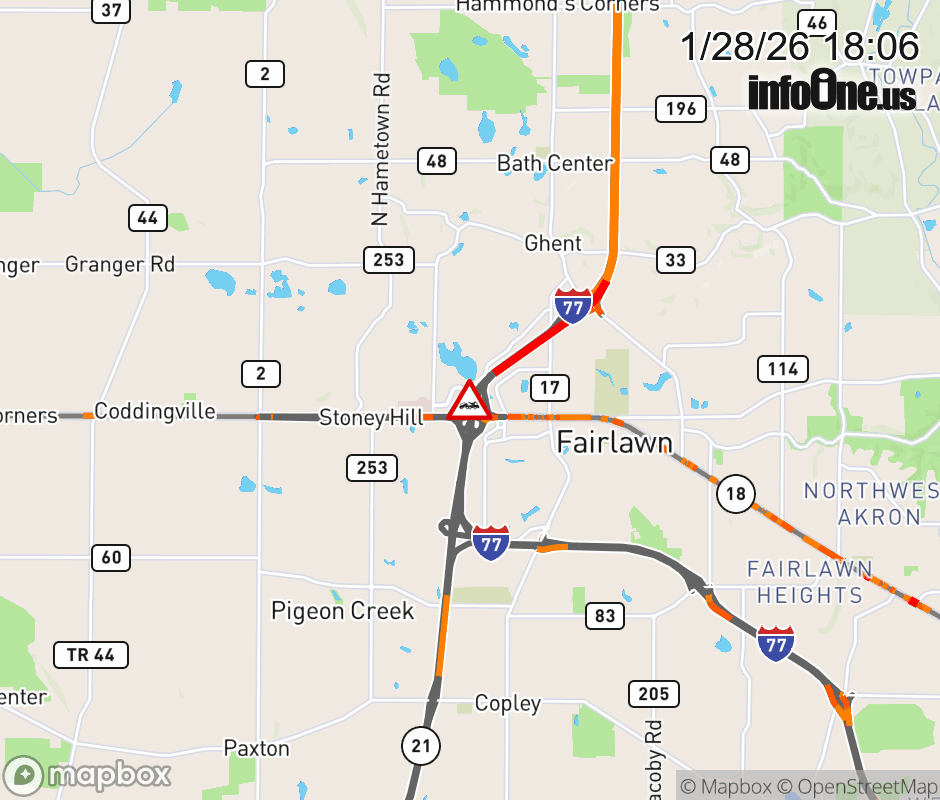 All lanes are blocked on Ramp SR-18 West to I-77 South, due to a disabled vehicle. ![]() |