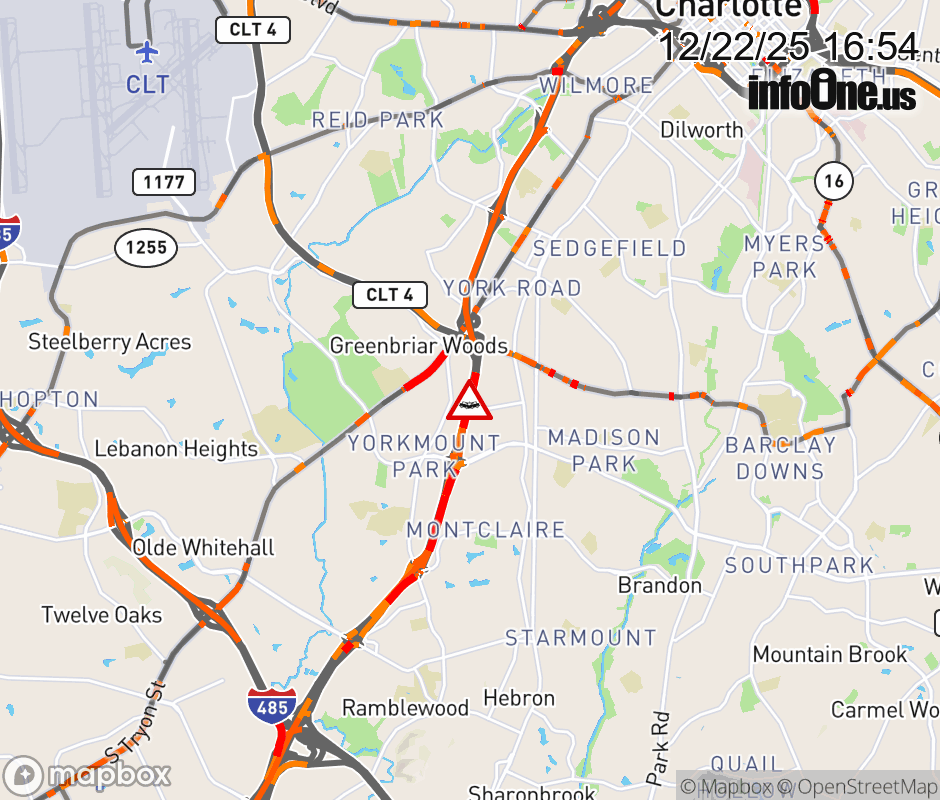 The right shoulder is closed past Exit 5 (Tyvola Road). Updated: Mon 12/22/25 4:54 PM EST ![]() Updated: Mon 12/22/25 4:54 PM EST |